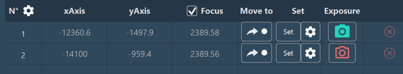 - Focus or Z-axis: Use the focus value used for the selection of the positions. If the checkbox is not selected, the current focus value of the microscope will be used.