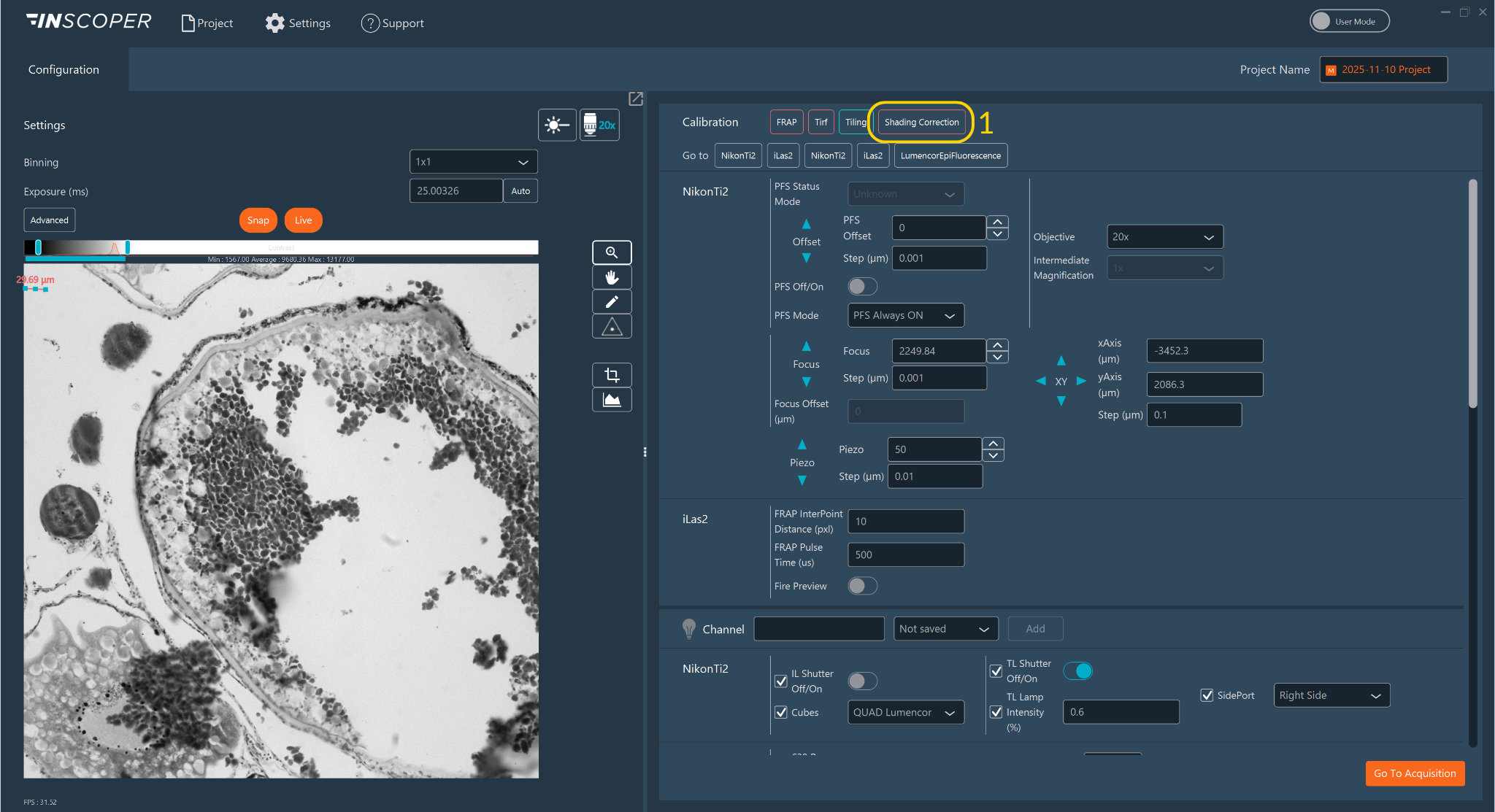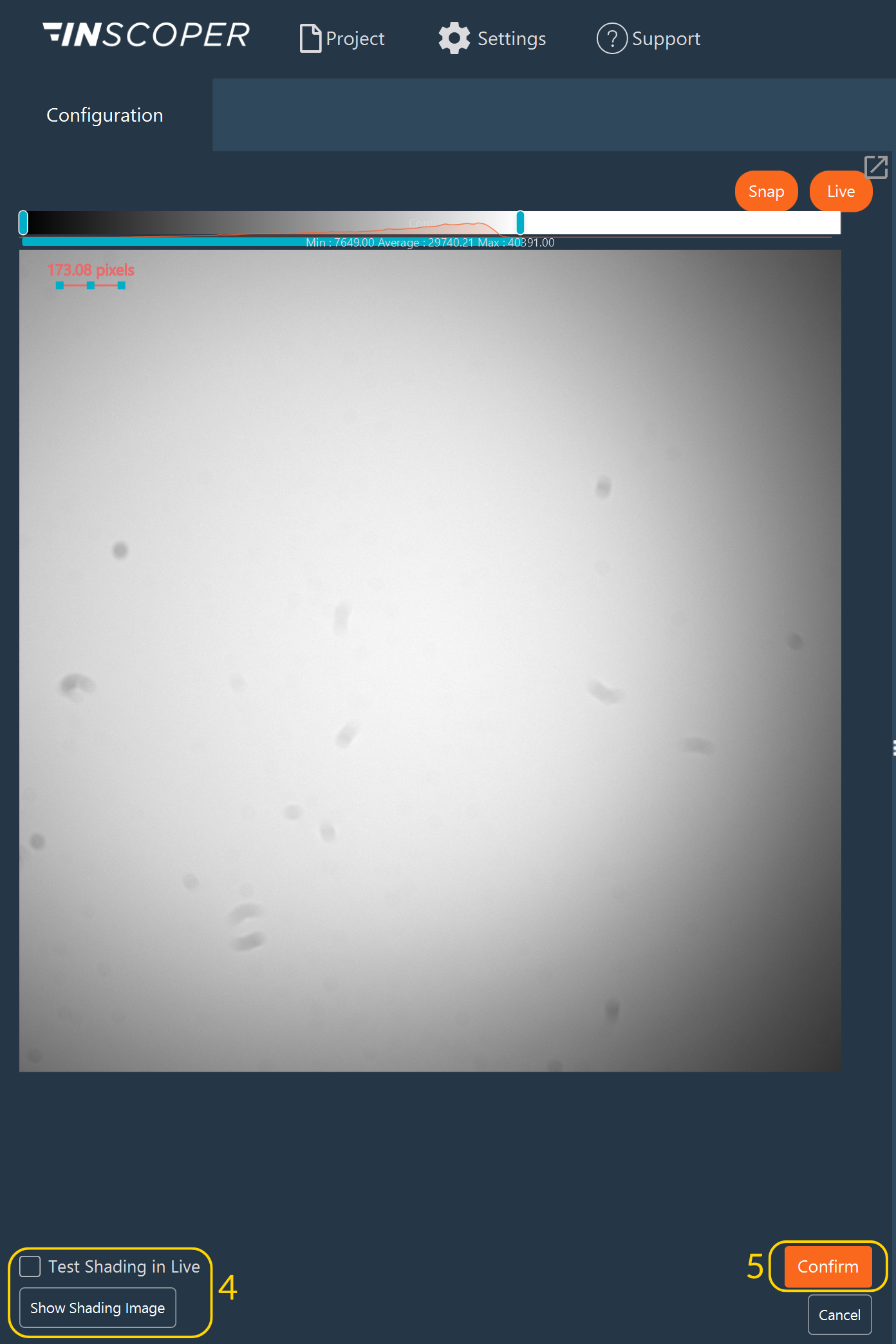 - When the shading calibration is successfully done, the Shading Correction button changes from red to green.